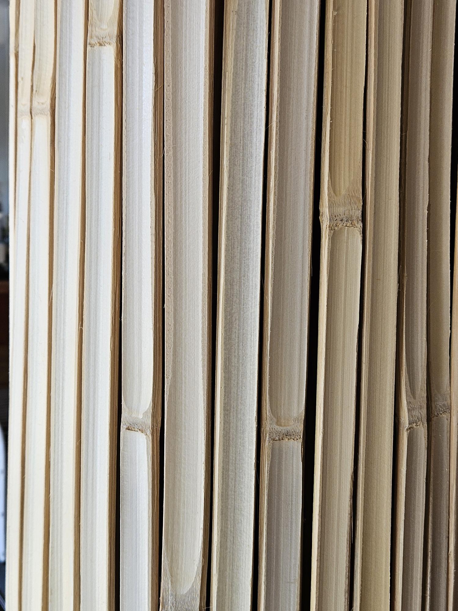 Au fur et à mesure de leur séchage, nos lamelles de bambou perdent leur couleur d’origine, et deviennent beige/marron.